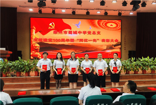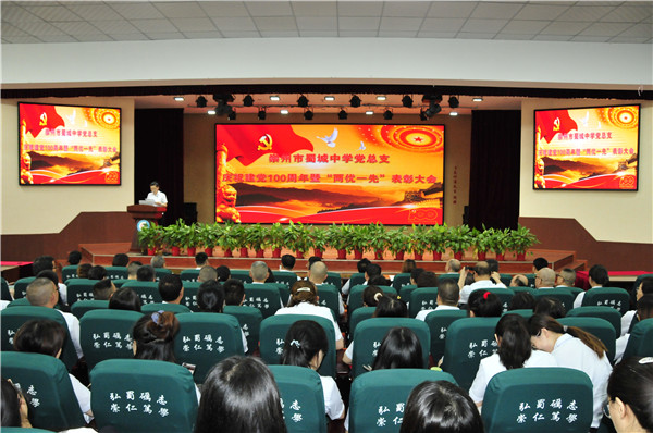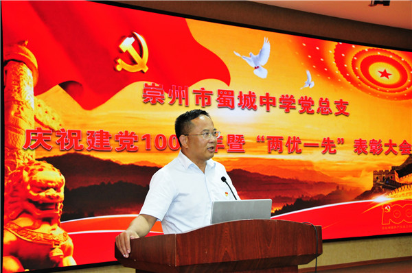 6月28日,崇州市蜀城中学召开庆祝建党100周年暨“两优一先”表彰大会,重温党的光辉历程,讴歌党的丰功伟绩,表彰优秀个人和先进集体,激励广大党员满怀豪情创新业,斗志昂扬谱新篇。全校党员怀着节日的喜悦参加了会议,校团委副书记何冬梅主持会议。