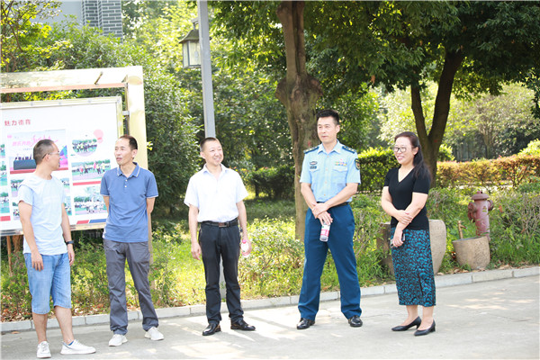 成都警备区战备建设处参谋周明泽【右二】、成都市教育局体卫艺处段廉【右三】
