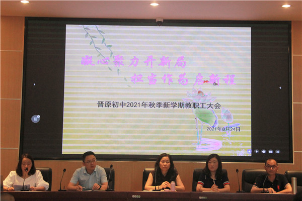 2021年8月24日,大邑县晋原初级中学(以下简称:晋原初中)在学术报告厅召开了2021年秋季新学期教职工大会。