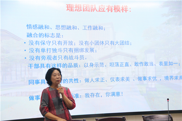季应朗校长以“铸就团队品质 提升个人价值”为主题,用长达数十年的教学经验与学校管理经验作为实践支撑,向成都十一中全体教职员工阐述了学校队伍建设的重要性与必要性。季校长以“自觉 自悟”为引子,结合丰富的教育教学及学校管理方面的案例,从理想学校的目标设定、理想团队的雏形打造与完善等层面,提出了“有规矩 有文化 有灵魂”的建设目标。在此基础上,季校长更进一步地提出了很多有针对性和极具操作性的教育教学方法,这让在场的十一中教师产生了浓厚的兴趣,老师们对季校长所运用的既符合教育教学规律又不失与时俱进的这些方式方法表示认同与信服,不时报以热烈的掌声。