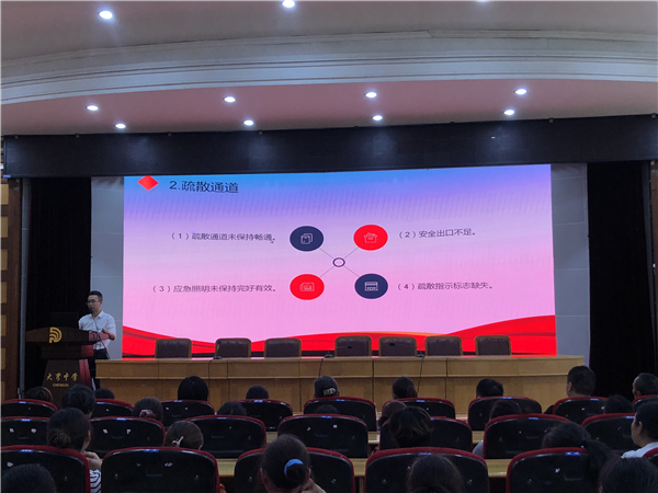 为进一步规范学校食堂食品安全和消防安全管理工作,提高学校食品从业人员岗位技能和知识水平,切实保障学校师生食品安全和食堂消防安全,8月29日下午,成都市大弯中学全体食堂从业人员在学术厅开展了食品卫生安全知识暨消防安全知识培训。该校分管行政•后勤中心的陈进副校长,分管安全的陈权副校长,行政•后勤中心主管食堂的周小兵副主任,安办林清全副主任参加会议。会议由学校食堂管理员、行政•后勤中心陈雪茹老师主持。