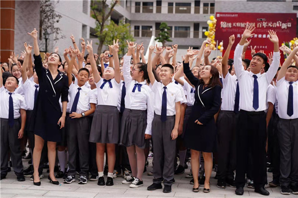 “元音中学盛大开校!”天府七中教育集团总校长陈刚郑重宣布。