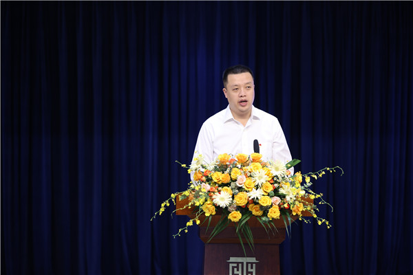 开校典礼第二篇章,天投教育公司董事、总经理助理李霞为元音中学校长李佳琰授元音中学校旗。校旗上,是元音中学的那古朴而又现代的徽记,凝结着历史的回音、今日的奋斗、明天的发展。正如学生代表王灏宸同学在发言中所说的,元音学子们必将勇担使命,以青春之名,向未来出发,成就元音辉煌,不辱首届荣光!