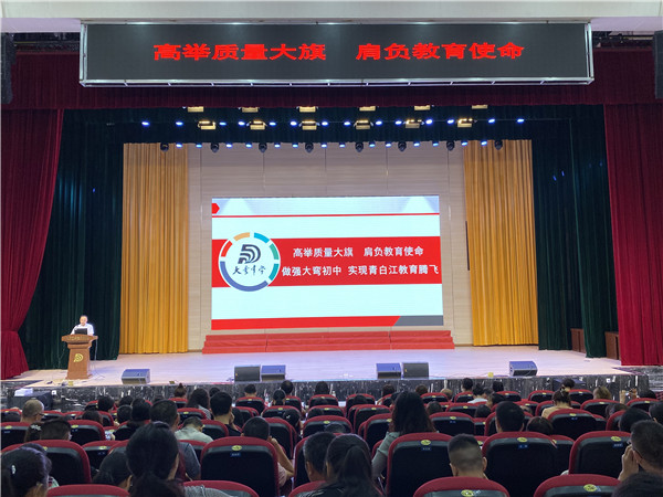 8月25日上午,学校召开了秋季学期开学全校教职工大会。会上,大弯中学初中学校校长杨小松开展了题为《高举质量大旗 肩负教育使命 做强大弯初中 实现青白江教育腾飞》的讲座。