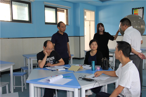 8月27日,各教研组、备课组在校进行备课、磨课、预上课、议课等教研活动,大弯中学校长赵泽高深入教研现场并有针对性地进行指导。