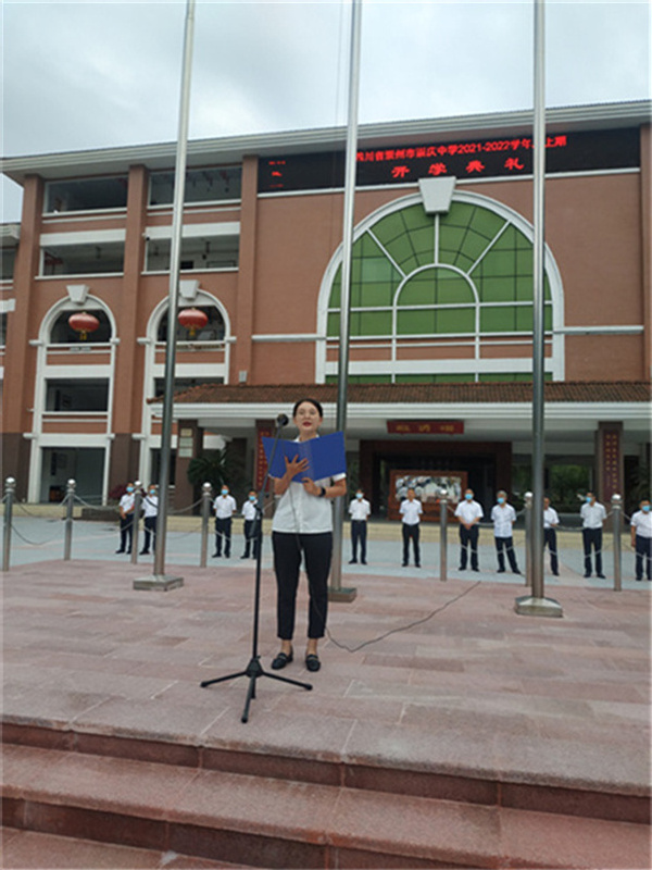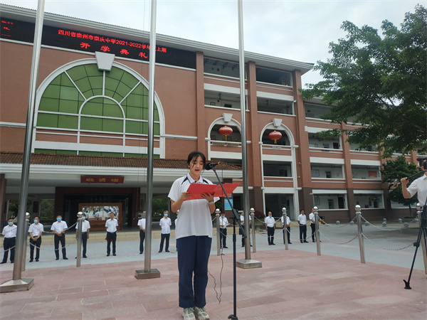 2021年9月1日,四川省崇州市崇庆中学举行别开生面的开学典礼。疫情防控形势下的开学典礼,简洁而隆重。师生代表现场保持安全距离,其余教师和同学在各班教室根据实时转播同步参与。
