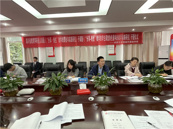 2021年10月18日,石室锦城外国语学校数学组迎来了学校教育科研工作的大喜事——省重点课题《“分享-创生”教学的理论与实践研究》子课题《“分享-创生”教学的学生课堂角色重构的教学策略研究》开题会议。除了庄斌副校长以外,更是邀请到了成都师范学院数学学院牟天伟副校长,成都市学科带头人、武侯区初中数学教研员张玉华老师参加会议。