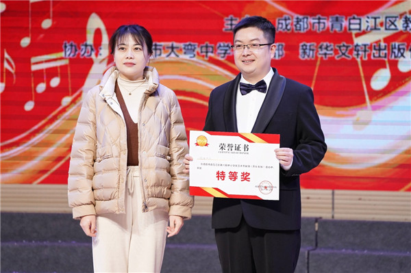 2021年12月9日上午,在青白江区教育局主办的第八届中小学生艺术节展演声乐专场中学组比赛中,成都市城厢中学绣川合唱团凭借优异的表演,力压群芳,勇夺中学组第一名、特等奖的优异成绩。