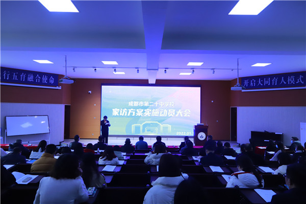 为贯彻落实《中华人民共和国家庭教育促进法》,让学校教育与家庭教育、社会教育紧密结合,协调一致,共同促进未成年人的健康成长,1月19日,成都市第二十中学校召开了家访方案实施动员大会。