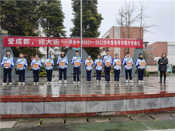 2022年2月17日上午9点半,成都市龙泉驿区洪安中学全体师生齐聚学校操场举行开学典礼。