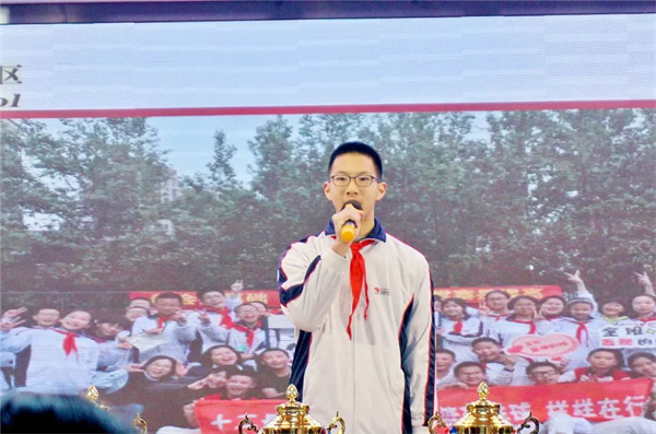 第六届“汇源杯”三大球比赛即将开始,成垚荣同学慷慨激昂地向全校师生发出号召:希望大家都能积极地参与到本届“汇源杯”比赛中来,为自己的班级出战,赛出高水平、取得好成绩!