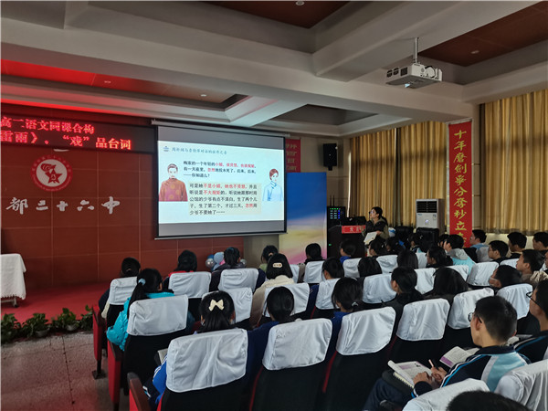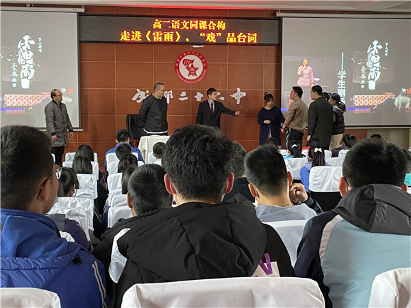 为响应学校助力青年教师创新课堂的号召,成都市第三十六中学校语文学科组探究同课合构教学实践活动如期开展。3月2日上午,在学校五楼报告厅,高二语文备课组陈林、任青青师徒同堂执教公开课“走进《雷雨》,‘戏’品台词”,执教对象为高二1、3班同学。部分行政干部、全体语文老师和其他学科部分青年教师参与了听课活动。此次公开课分为三个环节。
