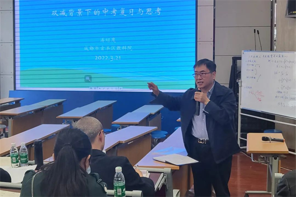3月21日下午,青羊区2022年中学数学初三复习研讨会在成都市石室联合中学(以下简称:石室联中)召开。此次会议以“‘双减’背景下初三后期数学复习研讨会”课题研讨活动设计方案为研究主题,旨在探究高效的初三后期课堂教学,找到提升质量的策略与方法。青羊区初三教师代表和初中重点学科“国培计划”的全体数学教师参会。