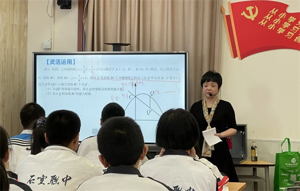 此次研讨会由石室联中数学组组长杨泽海老师主持。首先,石室联中初三数学教师高翔以“二次函数微专题”为切入点进行复习课展示。高老师的课堂既有针对读题、审题的学法指导,又有解题思路、常见规律的总结。学生经历了“独立思考——规律找寻——教师点拨——形成方法”这一系列高效有序的学习之后,逐步掌握了中考数学中重难考点的突破技巧。