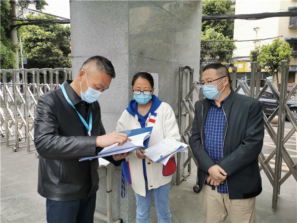 为严格落实学校常态化疫情防控工作各项要求,确保校园安全稳定,推进疫情防控工作有序开展,按照《成都市武侯区人民政府教育督导室关于开展疫情防控专项督导的通知》(武府教督〔2022〕8 号)文件要求,2022年3月23日下午,武侯区责任督学胡平来到成都西北中学实验学校(43中),就学校近期疫情防控工作进行专项督查,学校校长张明星、分管疫情防控副校长李岚、副校长贺韶鸽陪同调研。