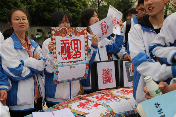 高二(5)不仅用汉服展示吸引顾客,还开启了大转盘有奖销售模式,高一(12)班则通过“有Q的亲笔签名”的奇招招揽顾客,高二(6)班请来了校内“歌星”来为他们的销售团队助阵。当然更有摊位以独特的商品和低价甩卖产生杀伤力,有同学为售出自己的按摩器,不惜鼓动如簧之舌,示范讲解,竭力打动顾客。同学们闲逛于书市之中,自由自在,难得的轻松。有的同学淘到了心仪之物品,欣喜之情溢于言表。