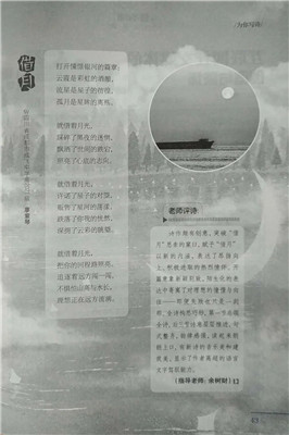 高一九班廖紫琴在《新作文·高中》2022年第6期上发表的诗作《借月》,指导老师为余树财老师。全诗构思巧妙,第一节总领全诗,后三节诗意层层推进,句式整齐,韵律感强,读起来朗朗上口,有新诗的音乐美和建筑美,显示了小作者高超的语言文字驾驭能力。