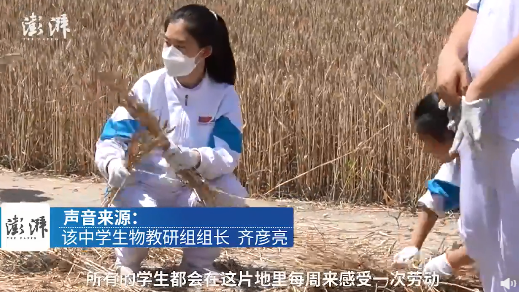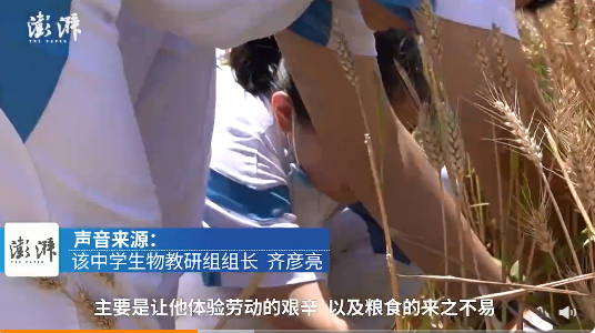 6月1日,陕西西安。某中学的学生在一块地里割小麦。老师称这是学校的劳动实践课,学生每周上一次,本次课程内容为收割3亩地的小麦,想让学生体验劳动的艰辛,珍惜粮食。
