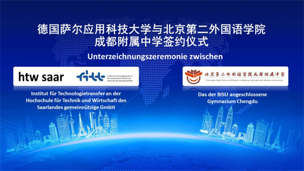 6月21日下午3时(德国时间上午9时),北京第二外国语学院成都附属中学(以下简称:北二外成都附中)与德国萨尔应用科技大学科技转化研究院合作签约仪式,通过远程会议举行。
