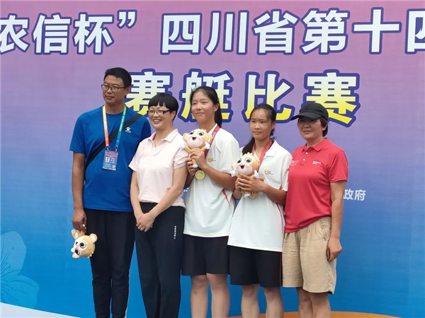 四川省第十四届运动会赛艇比赛于2022年7月13日至16日在四川省水上运动学校举行,天府新区与简阳联合组队代表成都市参赛,共获得8个前八名的佳绩。其中,天府五中队员吴佳琪代表天府新区与简阳队员桑吉卓玛配艇参加女子乙组1000米双人单浆比赛获得金牌!