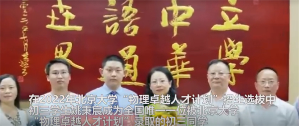 7月30日,四川成都,全国唯一一位初三学生上北大。在2022年北京大学“物理卓越人才计划”招生选拔中,初三学生姚秉宸成为全国唯一一位被北京大学“物理卓越人才计划”录取的同学!他表示希望自己将在全国最优秀的高等学府之一里,继续努力,勇争先锋。