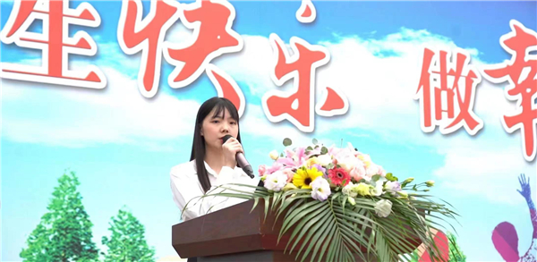 庄严的升旗仪式后,开学典礼正式开始,首先由学校新进教师杨利发言。杨利老师分享了她进校以来的所见所感,呼吁全体新老师不断学习,提升专业能力,塑就良好师德师风。她代表新老师承诺,在今后的工作中潜心学习、专注课堂、专注学生、不忘初心,努力书写幸福与尊严的事业篇章,铸就蜀中新的辉煌。