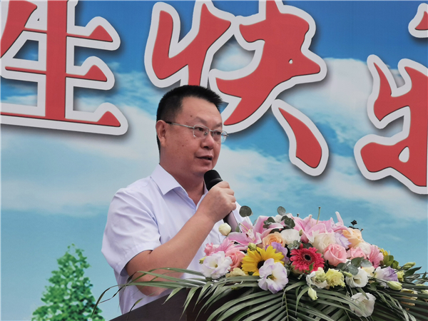 随后,学校党总支书记、校长王朝晖作开学典礼致辞。王校长代表学校向一直以来辛勤工作的老师们致以崇高的敬意,向每一位同学的到来表示热烈的欢迎。王校长肯定了过去一年全体师生奋力拼搏取得的辉煌成绩。王校长强调,新学期全校师生要踔厉奋发、勇毅前行,在担当中历练、在奋斗中成长,实现人生价值,升华人生境界,不负时代机遇;王校长希望同学们能笃定目标、坚守价值、砥砺奋斗,以青春为浆,以梦想为帆,以青春之我,谱奋斗之歌,跑出当代青年最好的成绩。