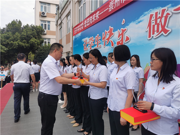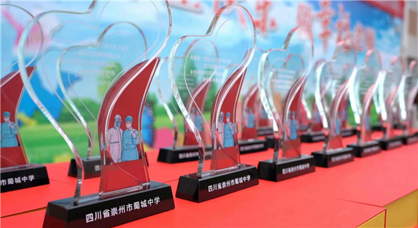 接着,大会集中表彰了在抗击新冠疫情中表现突出的教师志愿者代表。学校领导为驰援成华区疫情防控的25名老师颁发了奖状和纪念品,充分肯定了他们闻令而动、冲锋在前的精神。