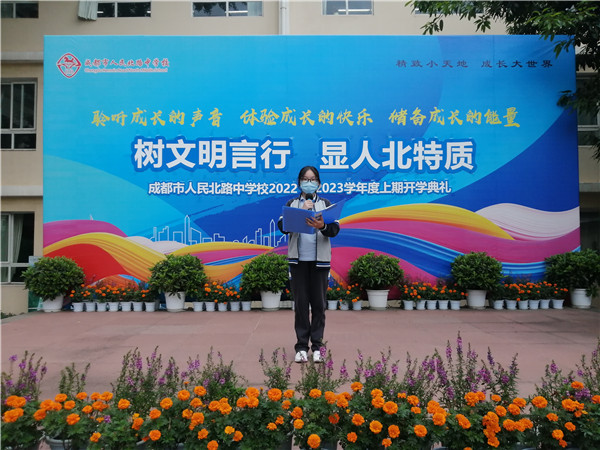 清晨的微风吹拂过校园,携着少年的朝气蓬勃,带着追梦的无限期待,9月20日上午10点,成都市人民北路中学校在各班教室举行2022-2023学年度上期“树文明言行 显人北特质”开学典礼。