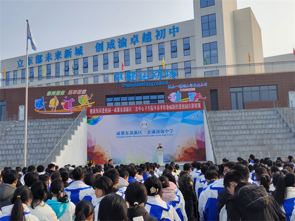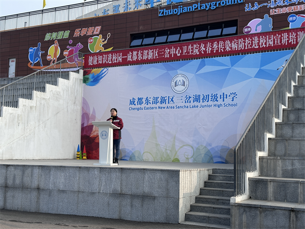 为加强全校师生对流行性传染病的认识,进一步做好校园传染病防控工作,1月9日上午,成都东部新区三岔湖初级中学(简称:三岔湖初中)特别邀请成都东部新区三岔中心卫生院疾病预防中心工作人员谢倩伟老师进校园,开展冬春季校园常见传染病知识宣讲活动。学校体卫艺处主任刘冲老师组织本次活动。