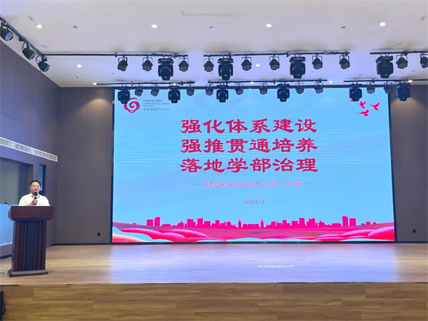 在培训会总结环节,校长何少衡作《强化体系建设,强推贯通培养,落地学部治理》主题指导,他谈到,在过去的一学年,学校教育教学工作的推进凝聚着全体教职员工的智慧与心血,学校基于20年文化传承,建立高质量发展体系,擘画了学校发展的美好蓝图,在学校未来发展中,聚焦质量打造,聚力服务提升,聚行特色营建,落实二次创业的具体行动,是全体成冠人长期奋斗的方向。