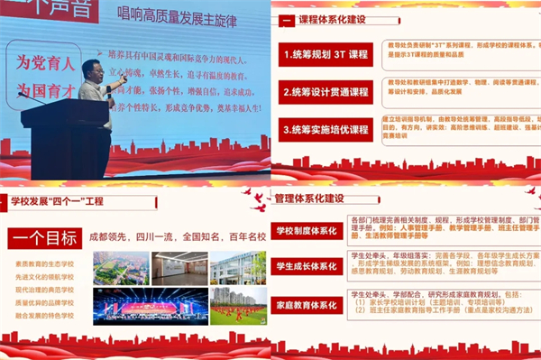 何少衡校长还从教学、德育、管理、服务等方面的发展举措与学校体系化建设和全体骨干教师作了深度交流。
