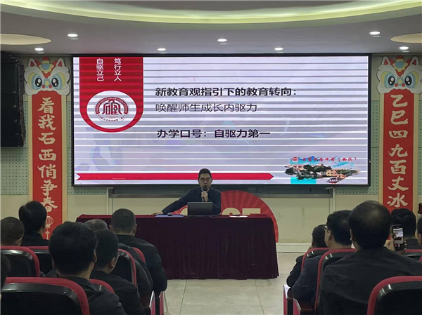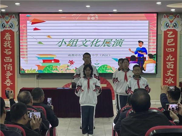阶梯教室内,小组文化展演的青春朝气尚未散去,“新教育观指引下的教育转向”主题分享已徐徐展开。从办学理念的凝练到成长内驱力的唤醒,从课堂生态的重塑到文化场域的构建,石室联中(西区)以“自驱立人”为锚点,与远道而来的教育同行共探“让每个生命主动生长”的育人路径。