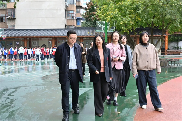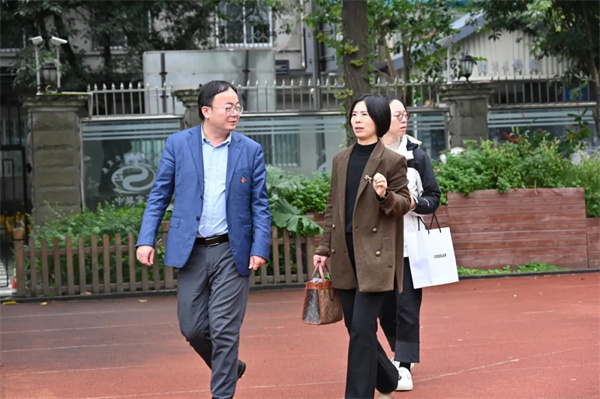 签约仪式及自由交流结束后,在石室联合中学领导的陪同下,丹棱中学的领导们一同参观了校园。嘉宾们从树人楼旗台前出发,实地感受石室联中的校园文化、基础设施和育人氛围。双方在参观过程中就学校管理、课程实施等话题进行了持续而深入的交流。