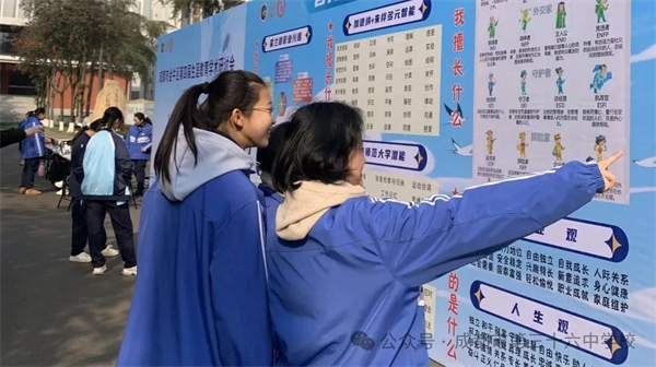 2026年1月9日,成都市第三十六中学校(以下简称:成都三十六中)校园内的长征大道上,一场关于“青春与未来双向奔赴”的生涯游园会在冬日暖阳下火热开展。这场游园会是由成都市金牛区教育科学研究院主办,金牛区生涯规划教育中心及生涯教育专委会与成都三十六中联合承办,四川佳发精志愿教育科技有限公司协办,旨在落实国家及省市教育改革要求,探索生涯规划教育的有效路径,提升学生自我探索和生涯规划能力,明晰生涯发展目标,激发成长内驱力。金牛区生涯教育教研员黄浩洋老师带领生涯教育专业团队和成都三十六中阳光心育团队的老师们负责本次游园会的现场工作,全校近千名学生利用9:30至14:30的课余时间,积极踊跃地参与这场生涯游园体验活动。