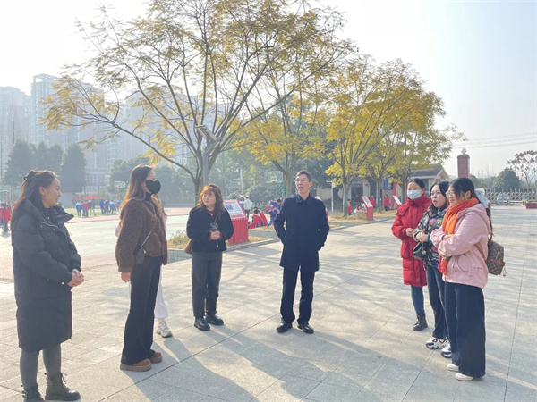家长代表们沿着校园路线,先后参观了教学场所、运动场地等区域。干净整洁的校园环境,让家长们对学校的办学条件有了更全面的认识。在参观过程中,副校长徐震贤详细介绍了学校的校园文化建设、安全管理措施等内容,解答了家长们的疑问。