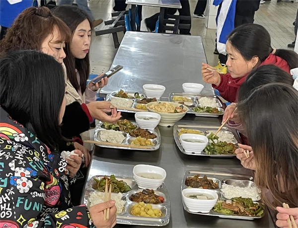 随后家长代表们来到学校食堂,与孩子们共同体验午餐。徐震贤介绍了食堂运营管理情况,涵盖食材采购、储存、加工、餐具消毒等关键环节,强调了食品安全保障举措。家长们品尝后纷纷表示,学校的午餐不仅分量充足,还兼顾了营养与口感,能让孩子在学校吃得健康、吃得放心。