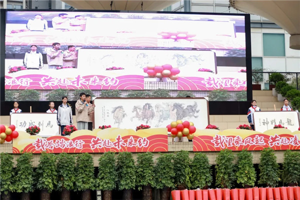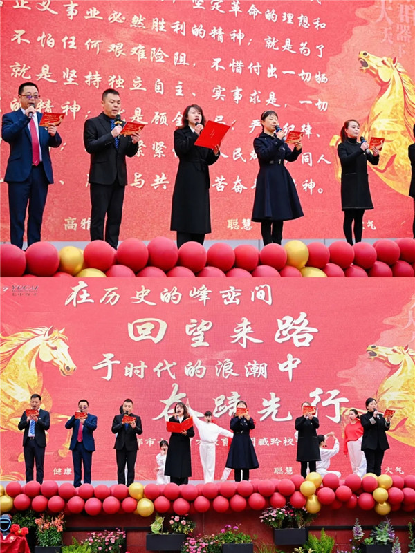 集团校长藏玲与各校区校长共同向育才学子致以新学期的期望。寄语学子成为明辨方向的“识途马”、攻坚克难的“冲锋马”、开拓创新的“千里马”,实现育才马从传承、奋战到引领的精神塑造。