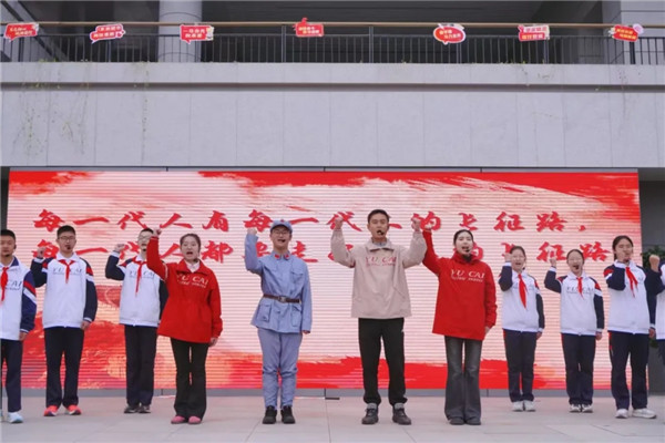 少年自有凌云志,不负韶华行且知。育才师生代表齐诵诗歌《代代长征路,昭昭报国心》和《卓越少年赋》,让红军热血与少年赤诚跨越时空对话,奏响信仰传承的强音。
